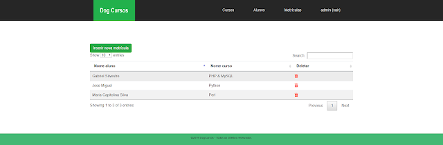 Tela de cursos (após o "NovoCursoEditar" ter sido deletado):